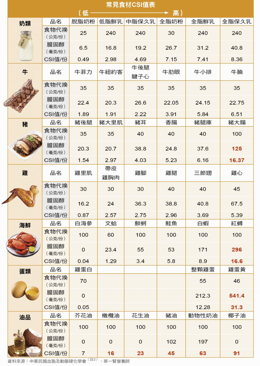 ■CSI=1.01×飽和脂肪酸(克)+0.05X膽固醇(毫克)