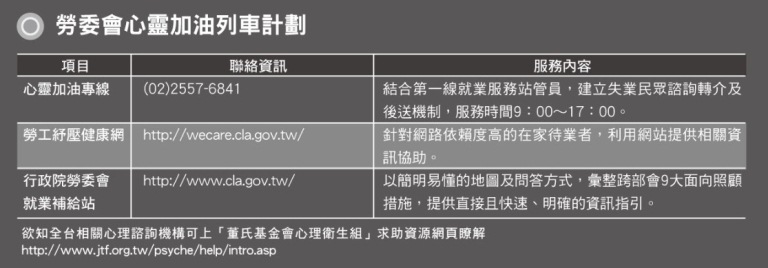 因失業導致情緒低落,可善用社區心理衛生中心資源,尋求心理諮商管道。