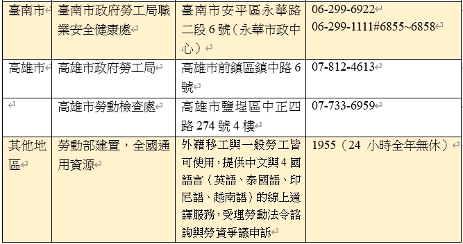 職業災害預防及重建中心:0800-068-580(您要幫我幫您)。
