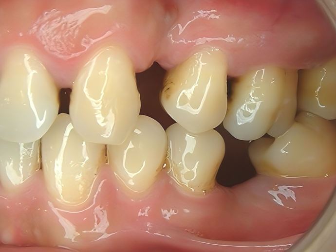 圖說:長期缺牙會造成鄰近的整排牙齒歪倒、牙齦萎縮。(圖/柏登牙醫診所黃斌洋院長提供)