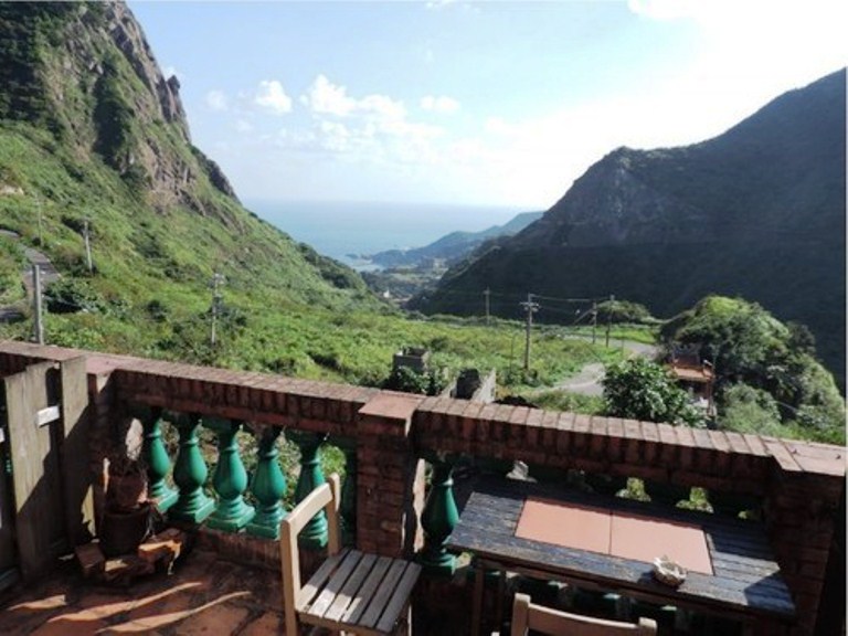 房間外的露台看出去,可直接眺望遠處的黃金陰陽海,左為九份基隆山,右側則是有金瓜石無耳茶壺山的環抱,有著獨特氣候變化萬千的窗外景色。