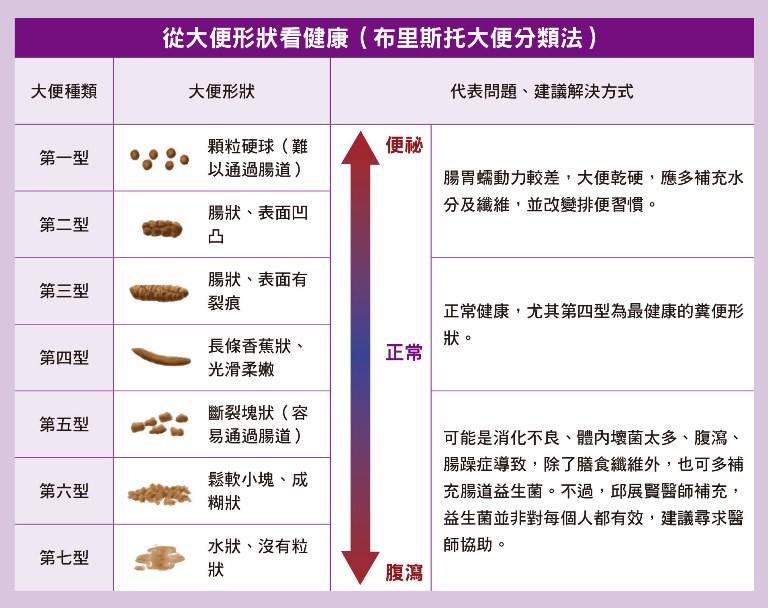如果每天都正常排便,代表沒有宿便嗎?對此,邱展賢醫師說,就算每天排便,也不一定每次都排得乾淨,就像擠牙膏一樣,每天都要將大便完全解乾淨是不太可能的,若每次剩得太多,累積久了也可能形成宿便。基本上,只要有固定排便,糞便形狀、顏色也都正常,呈現棕黃色香蕉狀,就不用太過擔心。