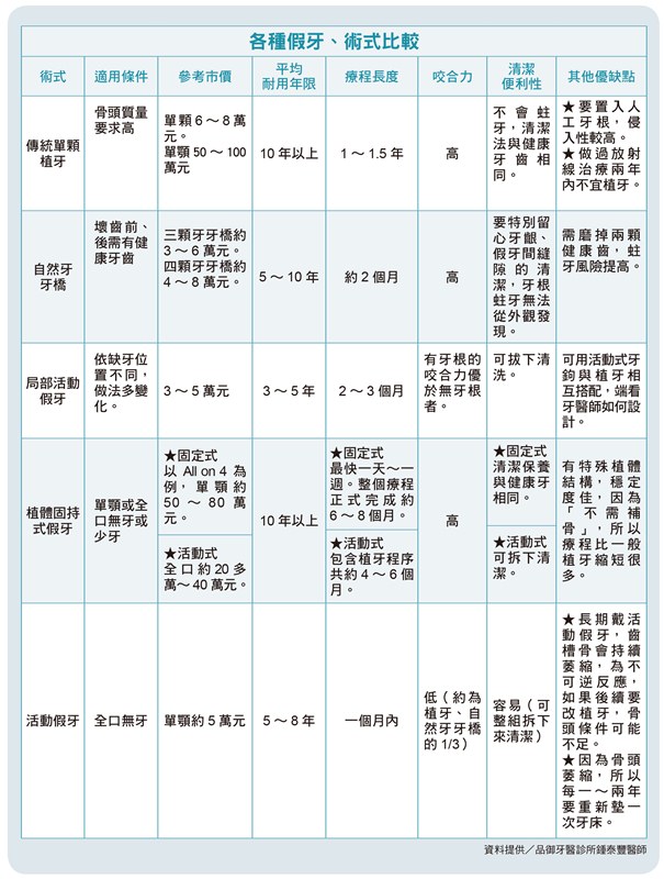經濟不景氣,現在大家消費都少不了追求「高CP值」;如果缺牙了,植牙動不動就要幾萬,缺牙太多,甚至要花上百萬,痛苦指數直逼買房。尤其牙齒出狀況對很多人來說,並不是預期中的事,荷包突然被挖走一大塊,那種感覺真是「牙痛心也痛」、「禍不單行」啊!如果花大錢能處理好,也就罷了,但不時耳聞醫療糾紛,令人越來越不安。究竟,該怎麼選擇假牙或植牙?以下請專家說分明。