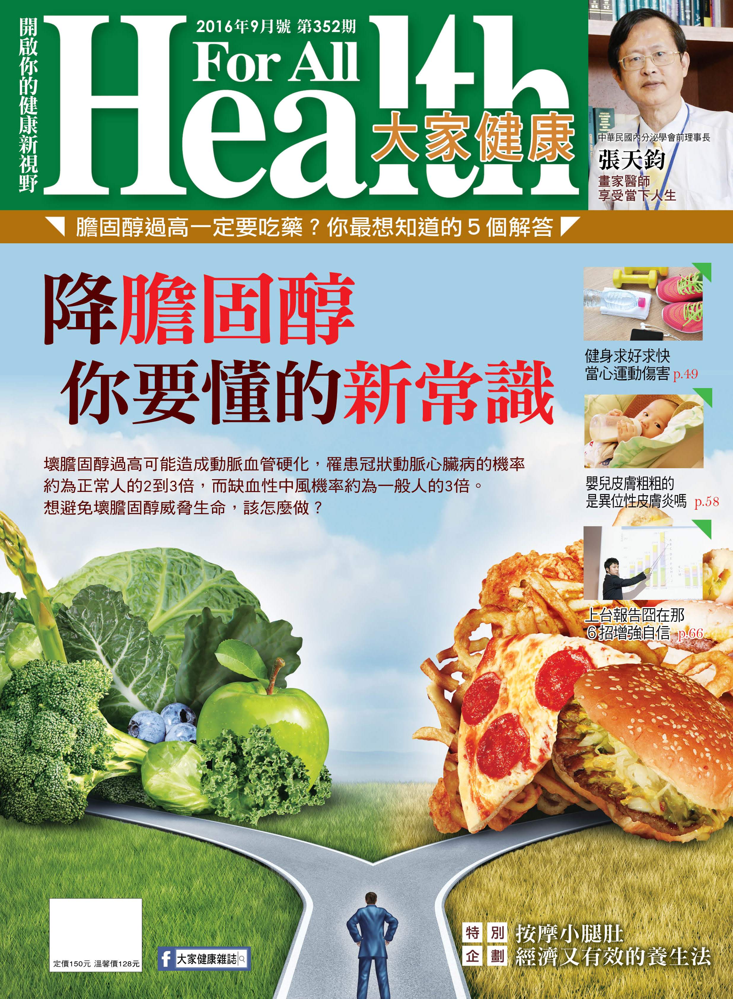 本期《大家健康》雜誌就要為你解開「膽固醇」的迷思,告訴你「膽固醇」最新的常識。膽固醇不全是傷害健康的,但壞的膽固醇過高,卻是體內隱形的殺手,所謂壞膽固醇的正式名稱是「低密度脂蛋白膽固醇」,或簡稱LDL-C。由於壞膽固醇過多時,會沉積在動脈血管壁上,使動脈硬化狹窄,長久下來就可能形成各種心血管疾病,所以被稱為「壞」膽固醇。至於另一種「好膽固醇」,正式名稱是「高密度脂蛋白膽固醇」,或簡稱HDL-C,一般認為它有「保護」心血管的功能。本期雜誌專訪醫師及營養師,解開常見的膽固醇疑問。